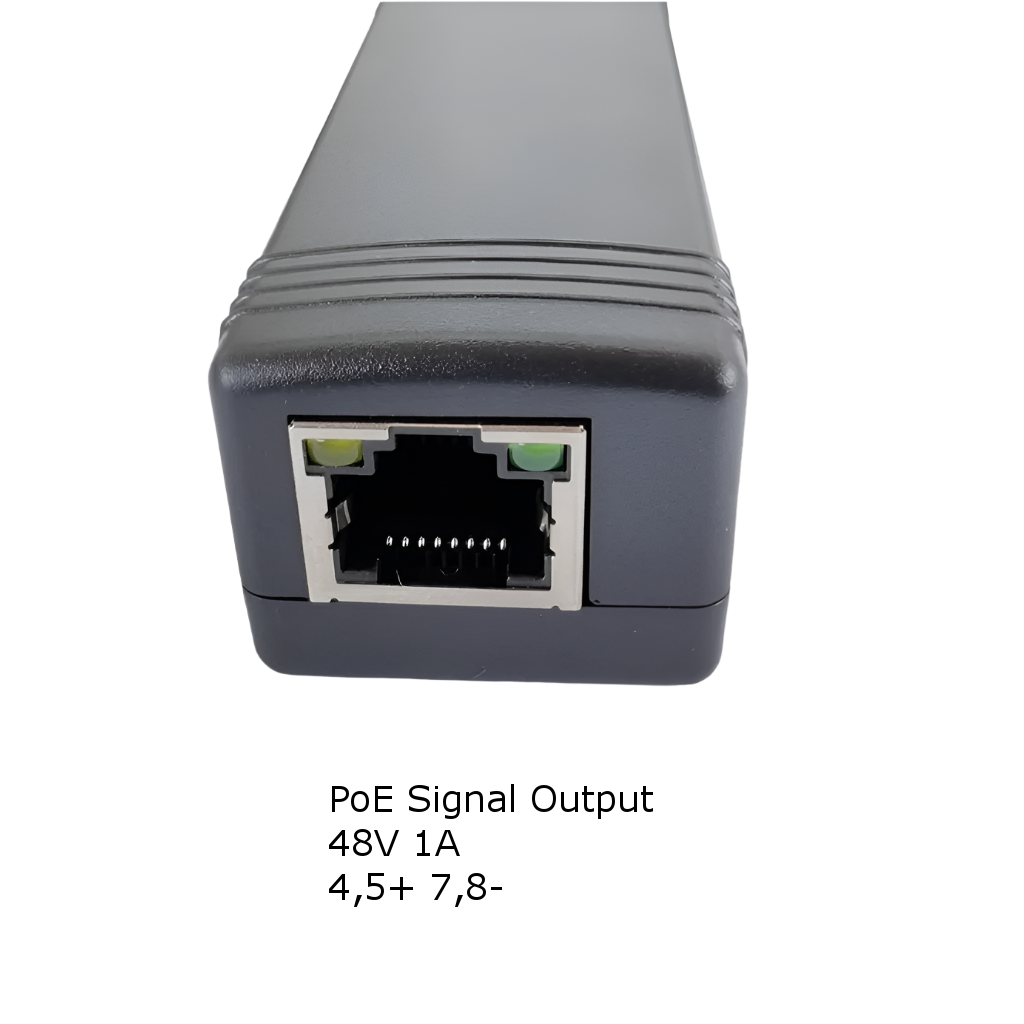 This PoE combiner offers a simple and efficient solution for powering PoE device up to 48W. It allows a wide range (6-36V) of DC input voltage, while providing a reliable 48V PoE output. Perfect for professionals seeking a compact but effective PoE injector solution.